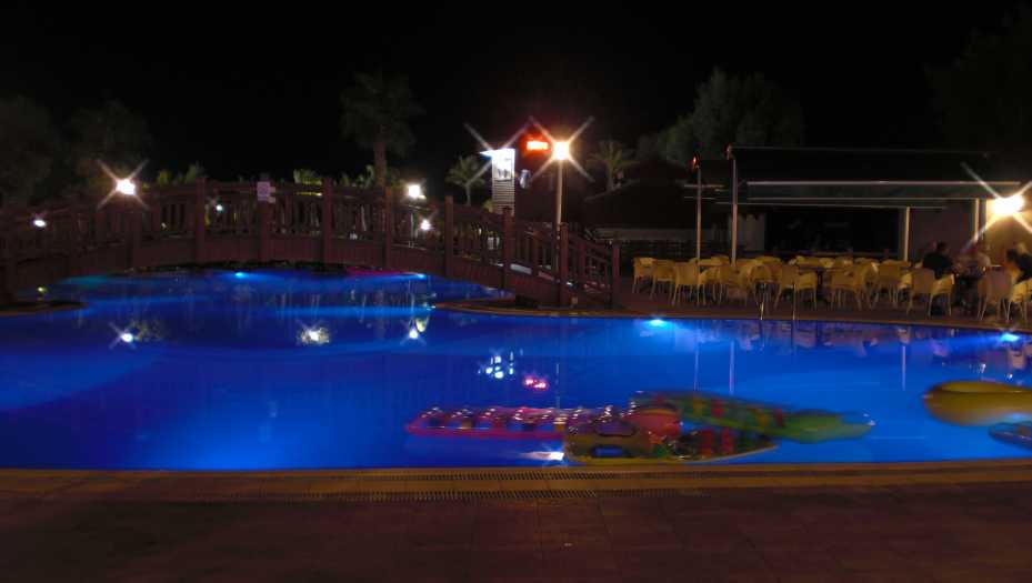 Zurück nach Draußen zum Pool. Dort befindet sich auch das kleine Amphitheater für die Abendanimation.